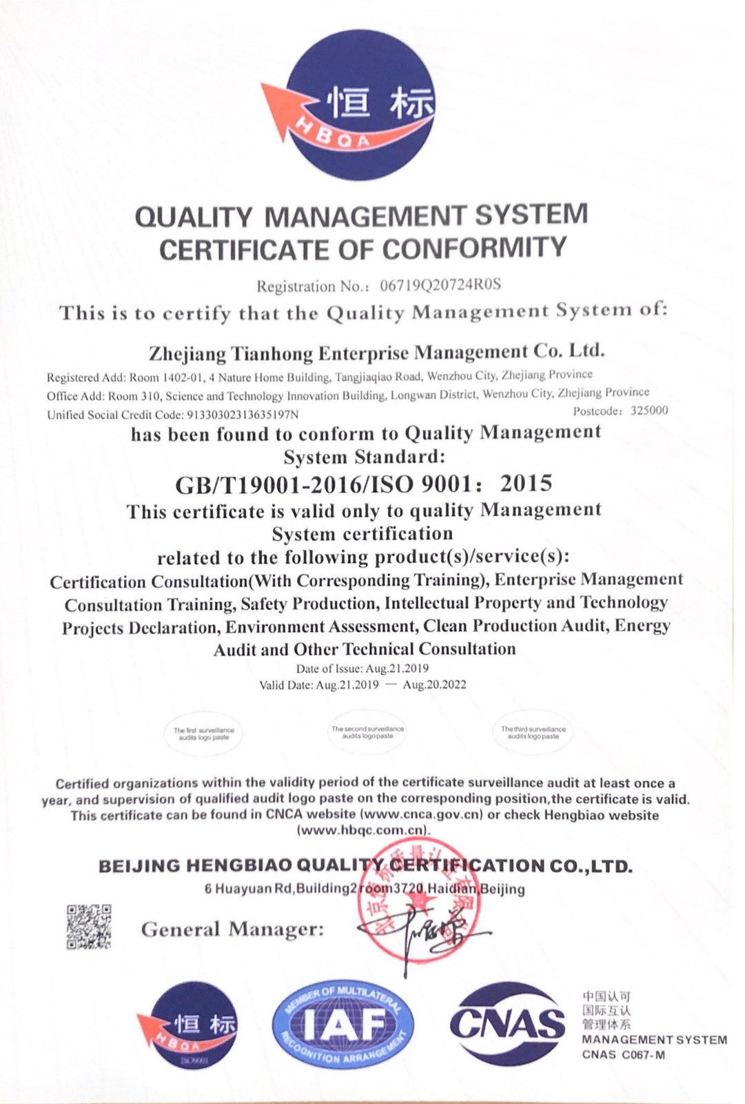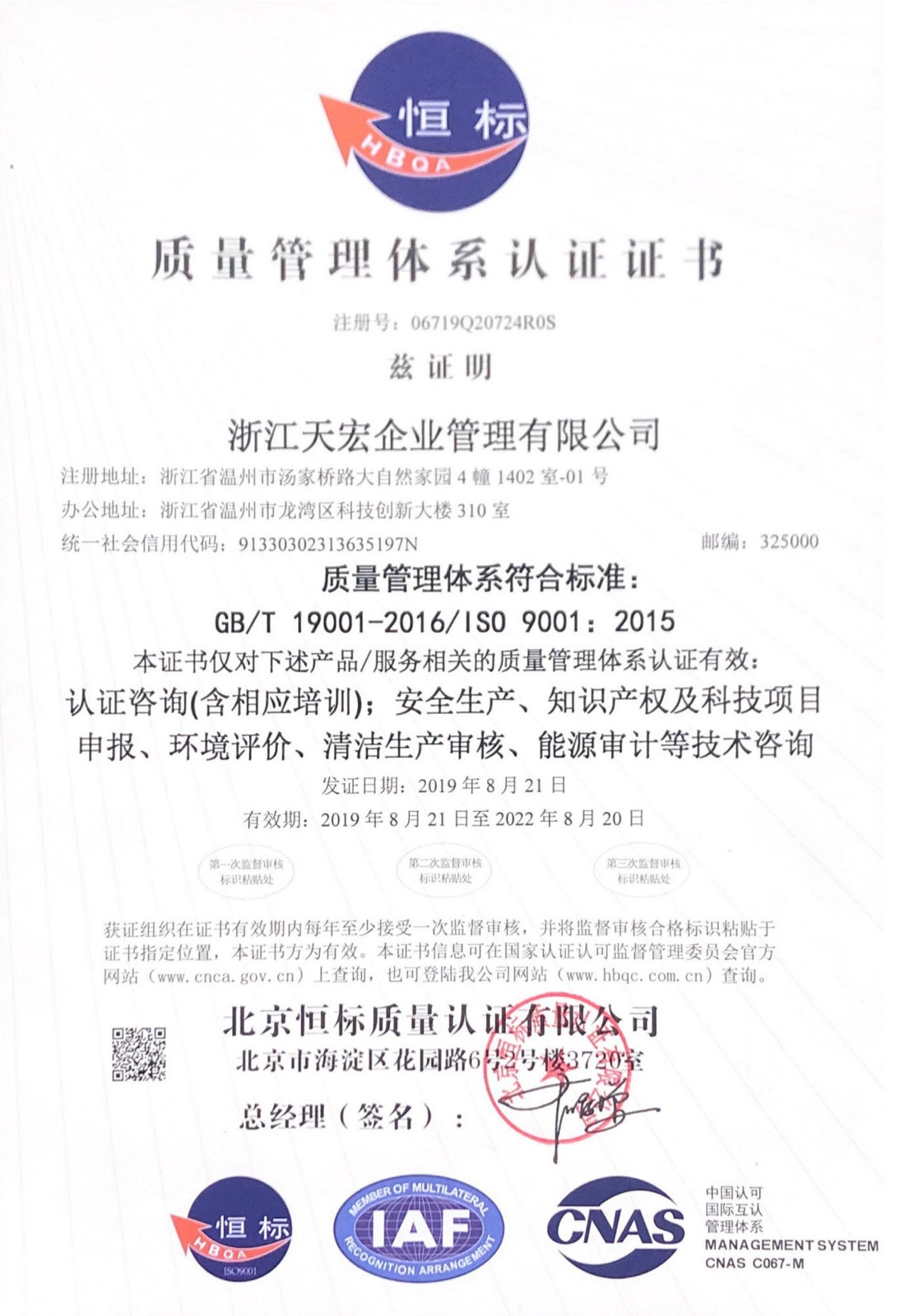 質量管理體系認證證書